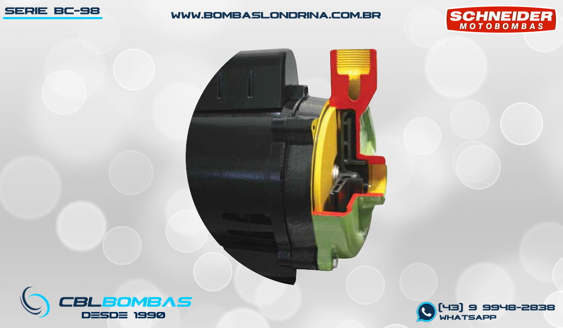 O modelo BCR-2010 é a evolução do modelo BCR-2000 (ainda em linha) e possui potências mais elevadas que modelo antigo (até 1,0cv). Sua parte construtiva se difere do modelo antigo por ter o rotor em NORYL®, COM 30% DE FIBRA DE VIDRO para mair resistência. Caracol e tampa traseira são em Ferro Fundido e selo mecânico em BUNA + INOX (veja lista de peças abaixo) Sua aplicação é exclusivamente residencial e atente alturas de até 27mca, com vazão máxima de 5,4m³/h (versão 1,0cv) para líquidos em até 55°C. Pode ser usado em residências, chácaras, pequenas irrigações, sistemas de circulação de água, fontes, cascatas e outros. Seu motor é WEG do tipo IP-00, que é transformado em IP-21 pela Schneider, com capa de proteção, proteção térmica e capacitor permanente.