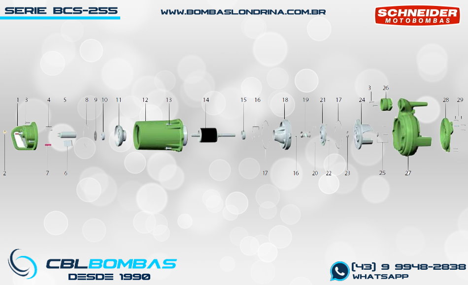 bomba schneider monoestágio para fluídos sem sólidos. disponível nas potências de 3/4cv , 1,0cv e 1,5cv