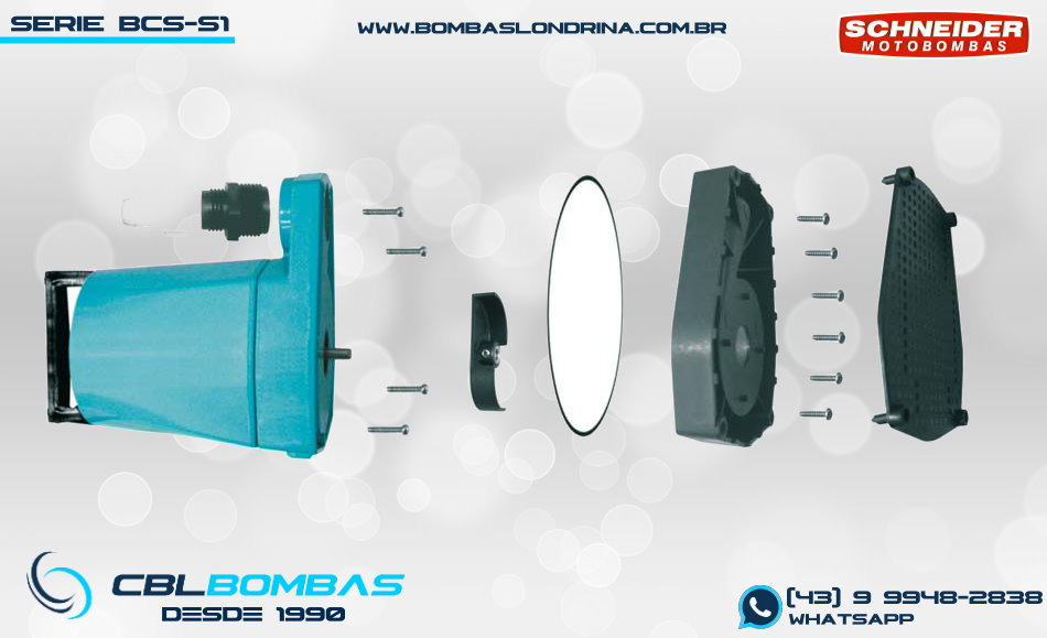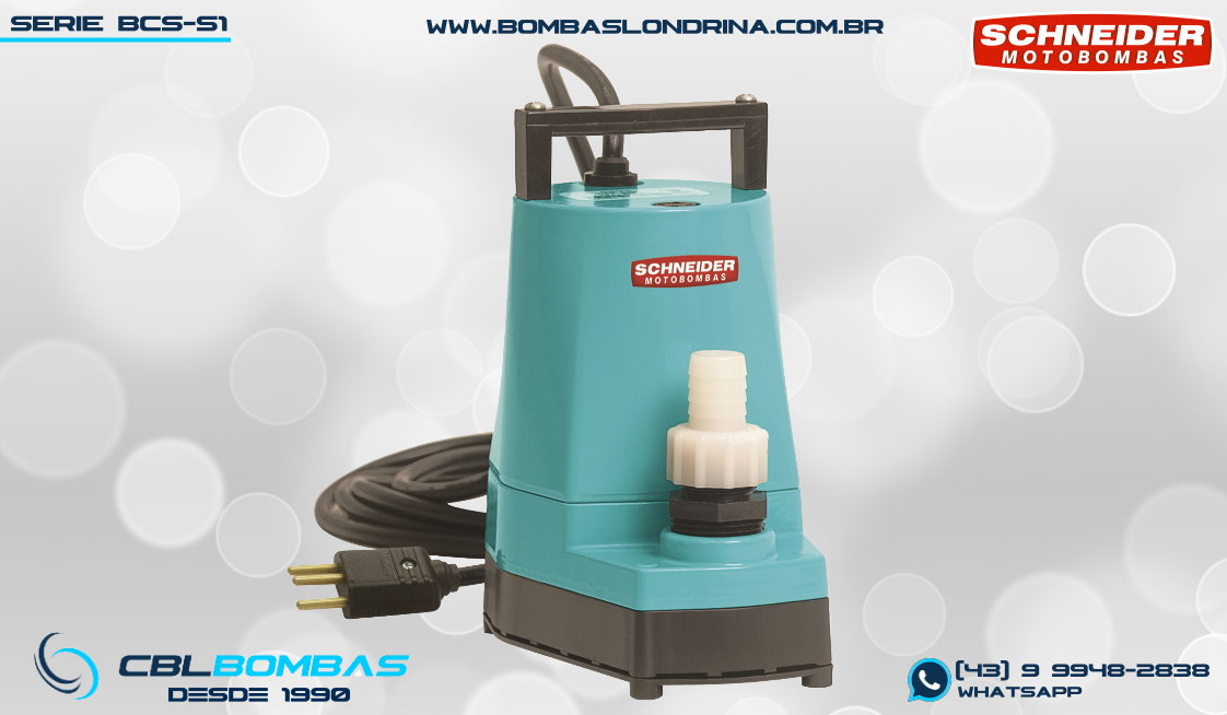 bomba schneider monoestágio para fluídos sem sólidos. disponível nas potências de 3/4cv , 1,0cv e 1,5cv.