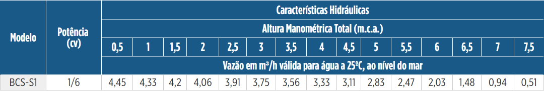 | Motor | Rotor | Vazão | Bocais | Pressão | Potência |