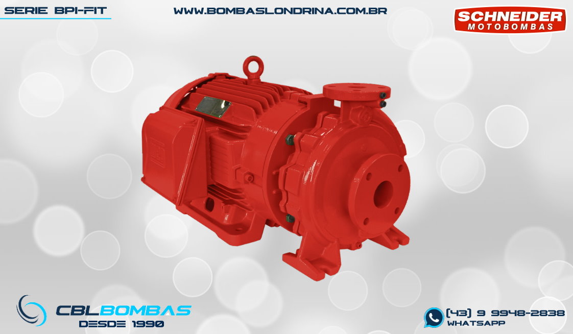 bomba de incêndio schneider para redes de hidrante. disponível nas potências de 4,0cv, 5,0cv, 6,0cv e 7,5cv.