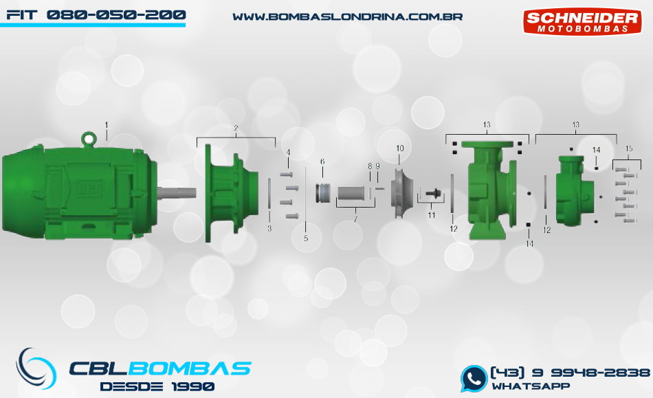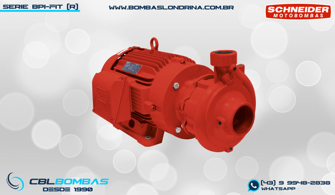 bomba de incêndio schneider para redes de hidrante. disponível nas potências de 3,0cv, 4,0cv, 5,0cv, 6,0cv e 7,5cv.