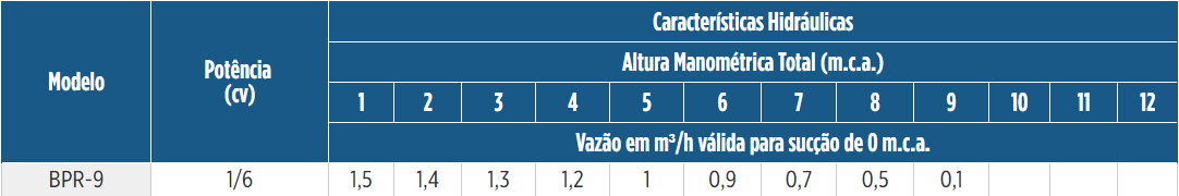 - • Para que a motobomba funcione adequadamente, sugere-se uma coluna de água positiva de, no mínimo, 2 m c.a. e que opere em sistemas abertos.