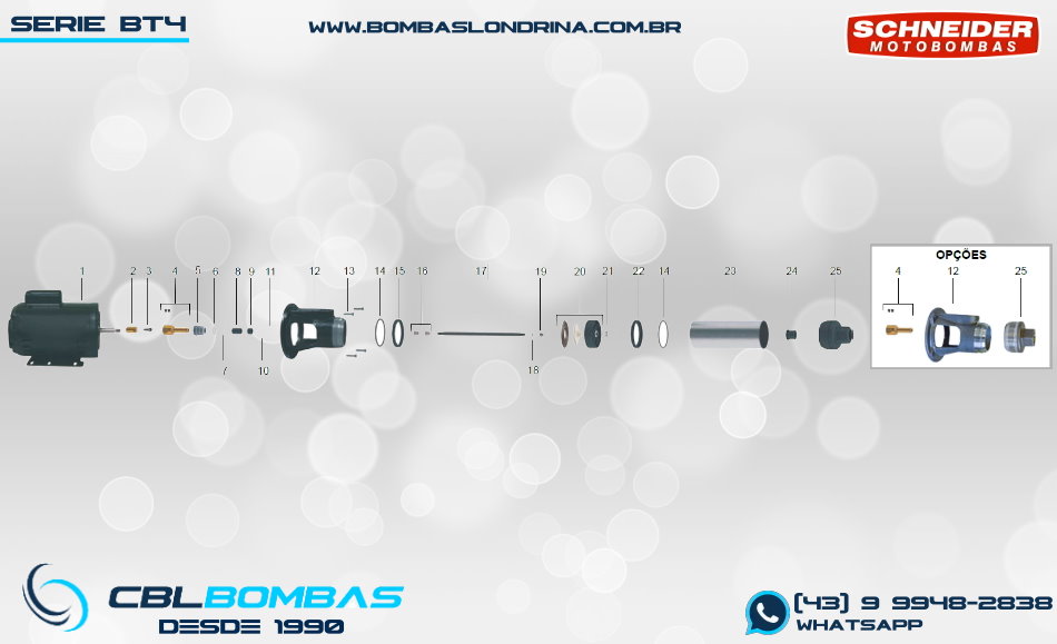 bomba schneider monoestágio para fluídos sem sólidos. disponível nas potências de 3/4cv , 1,0cv e 1,5cv.