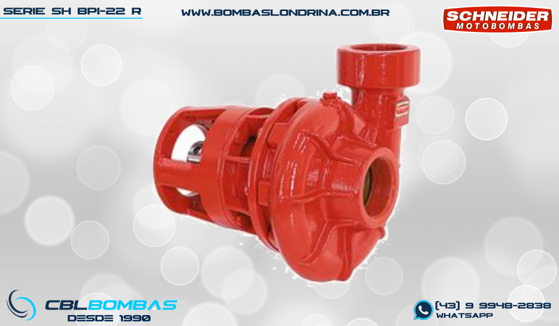 bomba schneider monoestágio para fluídos sem sólidos. disponível nas potências de 3/4cv , 1,0cv e 1,5cv.