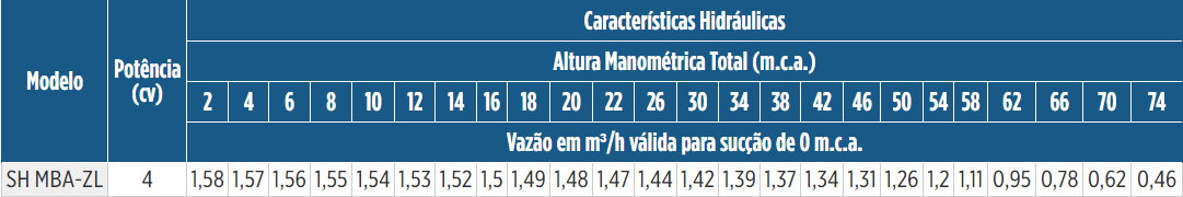 - • MBA-ZL – altura máxima de autoaspiração: 1 m