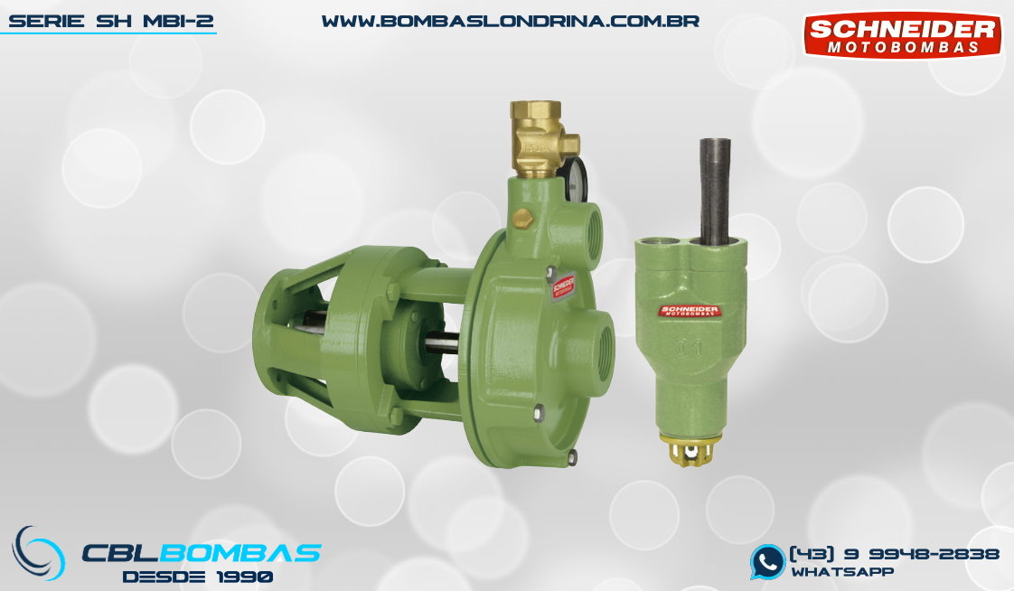 bomba schneider monoestágio para fluídos sem sólidos. disponível nas potências de 3/4cv , 1,0cv e 1,5cv.