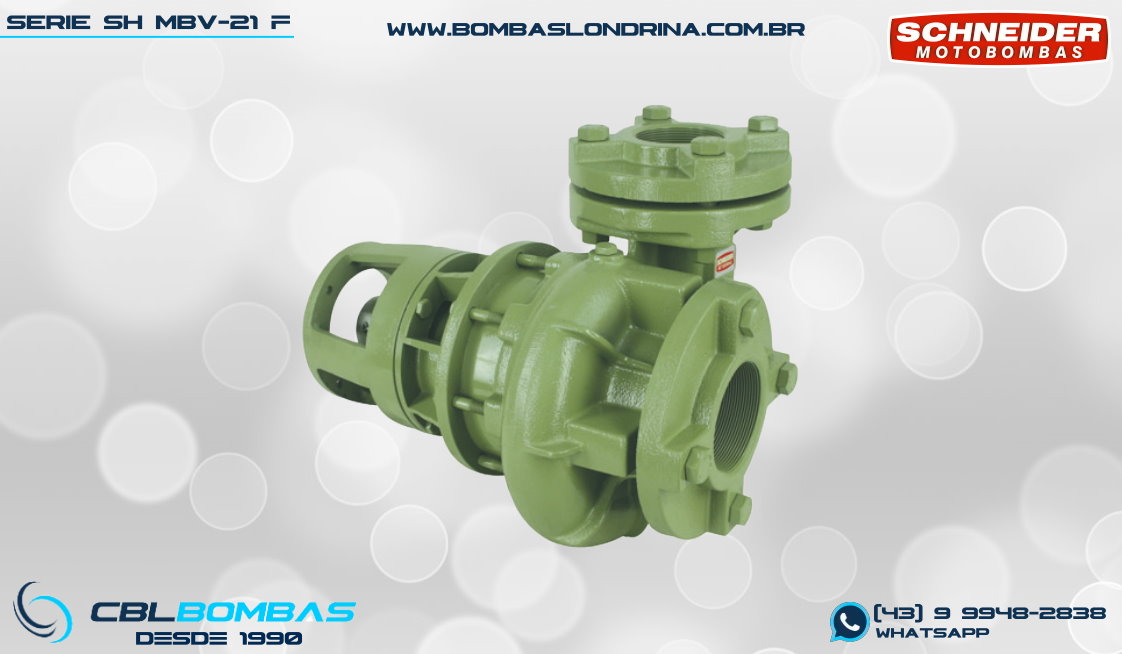 bomba schneider monoestágio para fluídos sem sólidos. disponível nas potências de 3/4cv , 1,0cv e 1,5cv.