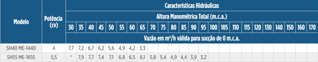- • Selo mecânico: EPDM carbeto de silício, Viton® carbeto de silício, outros sob consulta (somente para ME-BR)