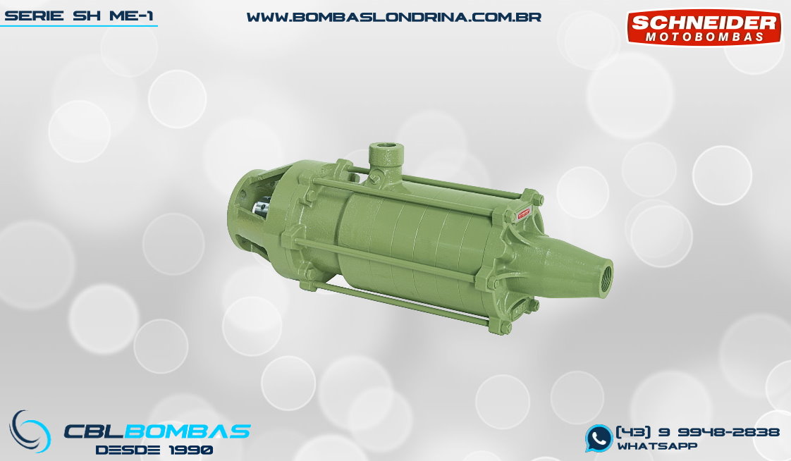 bomba schneider monoestágio para fluídos sem sólidos. disponível nas potências de 3/4cv , 1,0cv e 1,5cv.