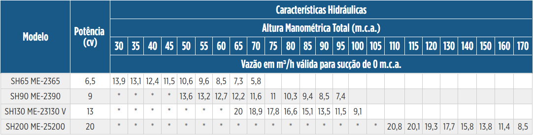 - • Selo mecânico: EPDM carbeto de silício, Viton® carbeto de silício, outros sob consulta (somente para ME-BR)