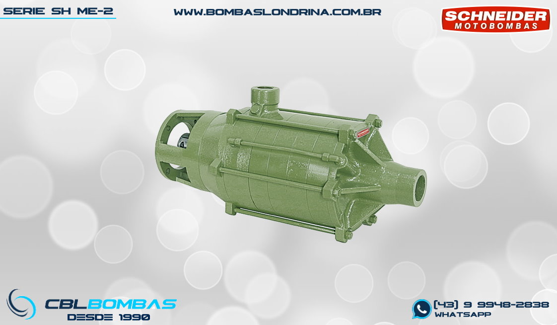 bomba schneider monoestágio para fluídos sem sólidos. disponível nas potências de 3/4cv , 1,0cv e 1,5cv.