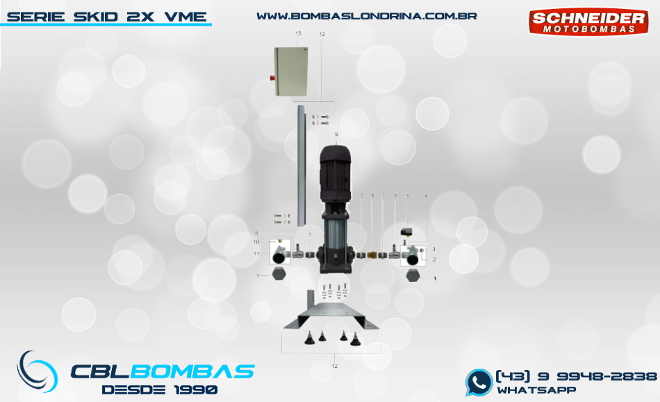 bomba schneider monoestágio para fluídos sem sólidos. disponível nas potências de 3/4cv , 1,0cv e 1,5cv.