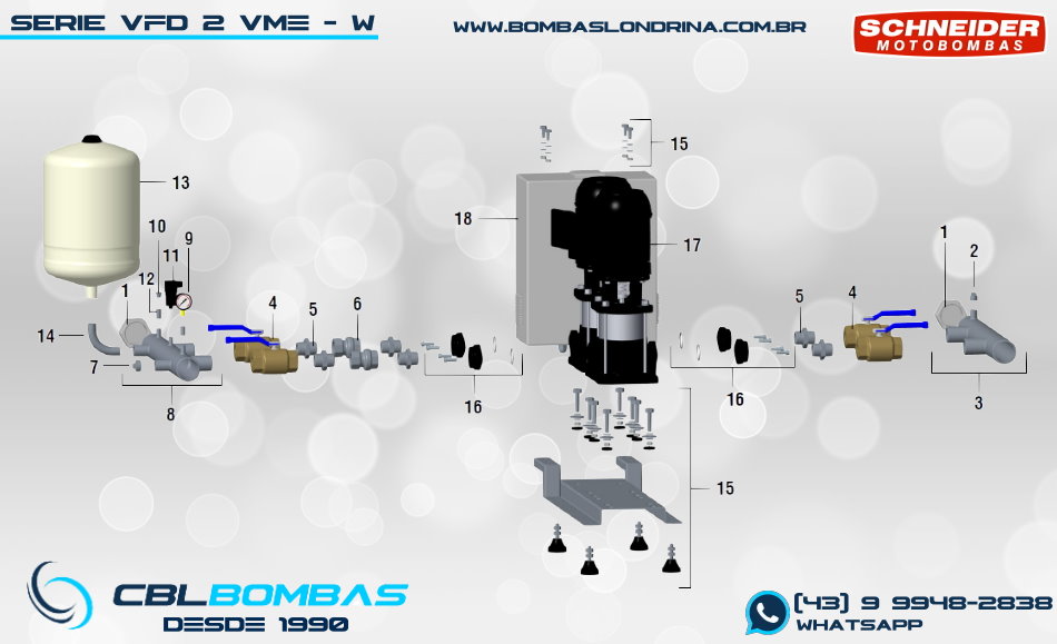 bomba schneider monoestágio para fluídos sem sólidos. disponível nas potências de 3/4cv , 1,0cv e 1,5cv.