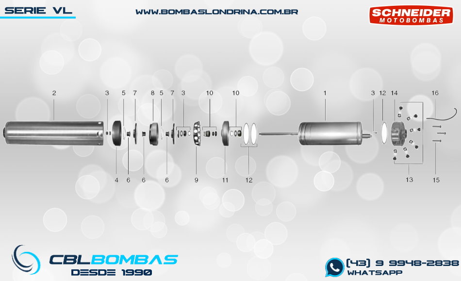 bomba schneider monoestágio para fluídos sem sólidos. disponível nas potências de 3/4cv , 1,0cv e 1,5cv.