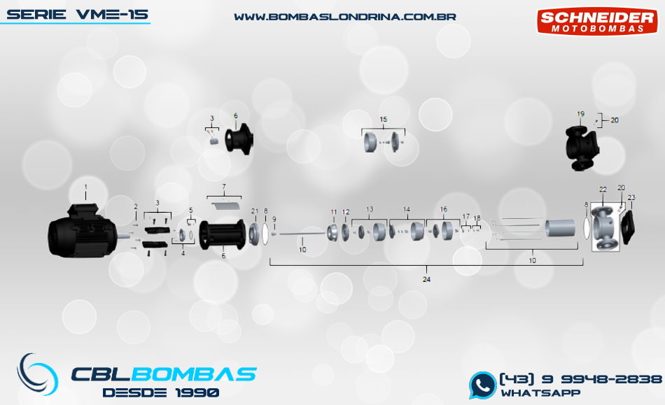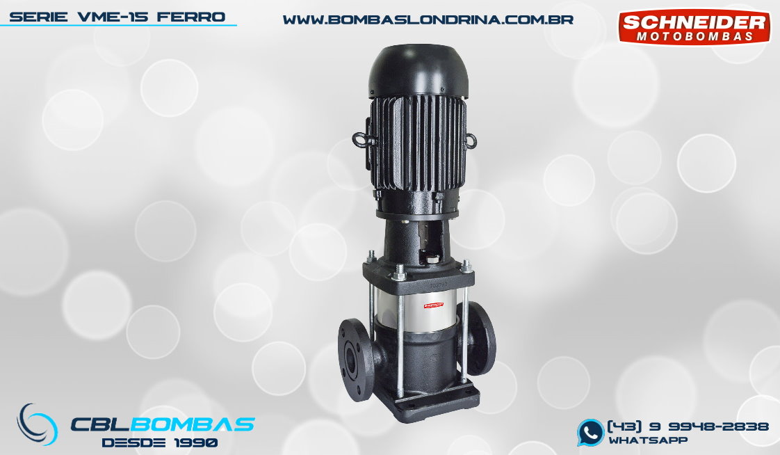 bomba schneider monoestágio para fluídos sem sólidos. disponível nas potências de 3/4cv , 1,0cv e 1,5cv.