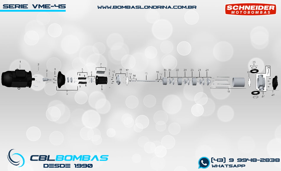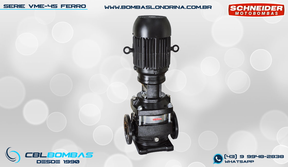 bomba schneider monoestágio para fluídos sem sólidos. disponível nas potências de 3/4cv , 1,0cv e 1,5cv.