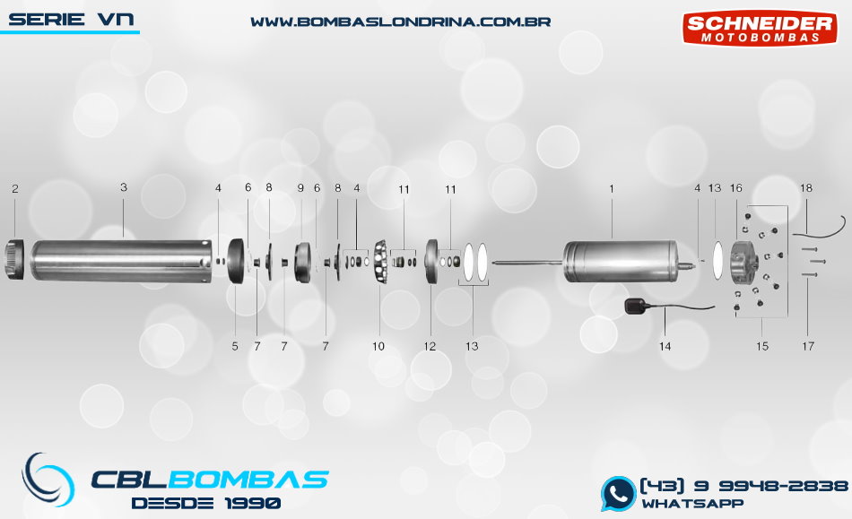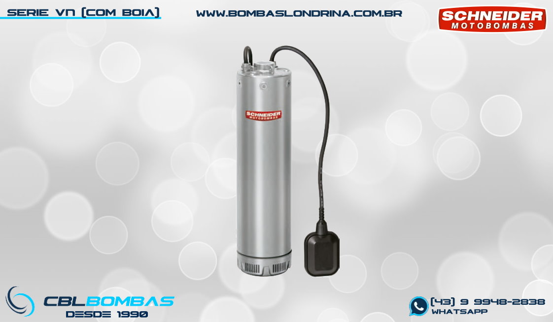 bomba schneider monoestágio para fluídos sem sólidos. disponível nas potências de 3/4cv , 1,0cv e 1,5cv.