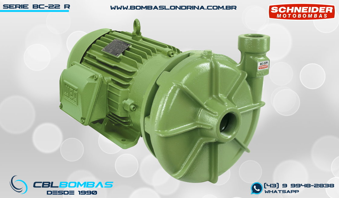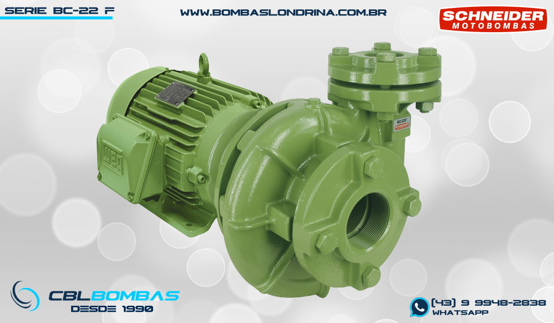 bomba schneider monoestágio para fluídos sem sólidos. disponível nas potências de 7,5cv a 20,0cv.