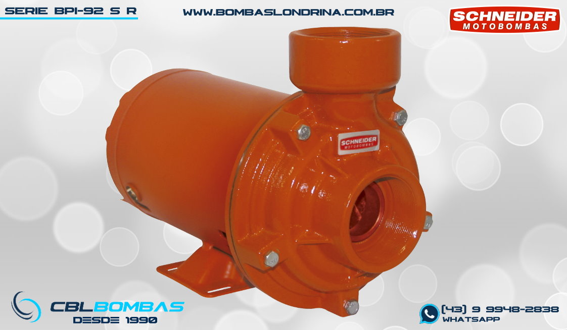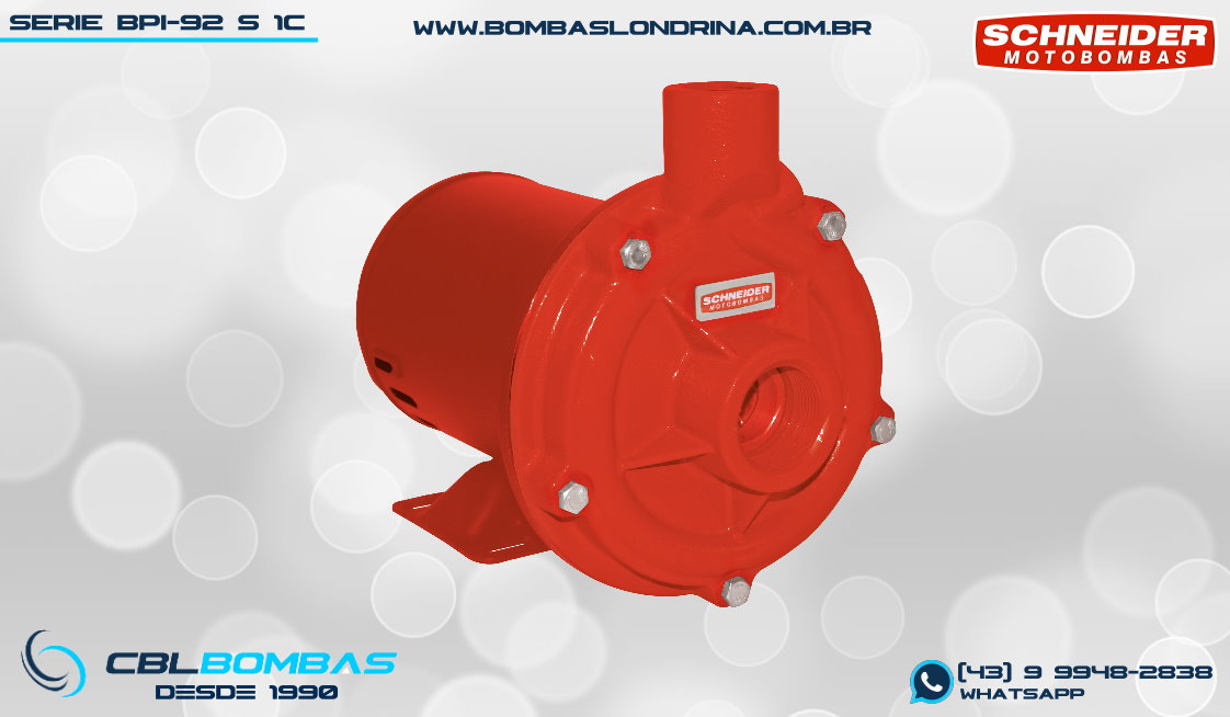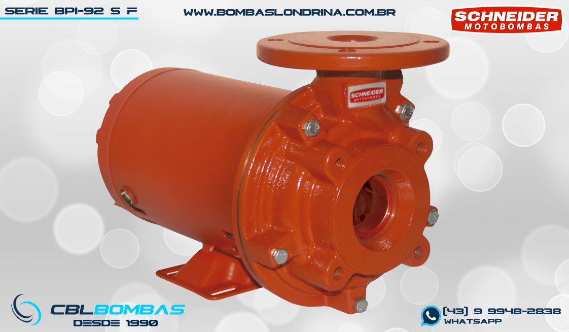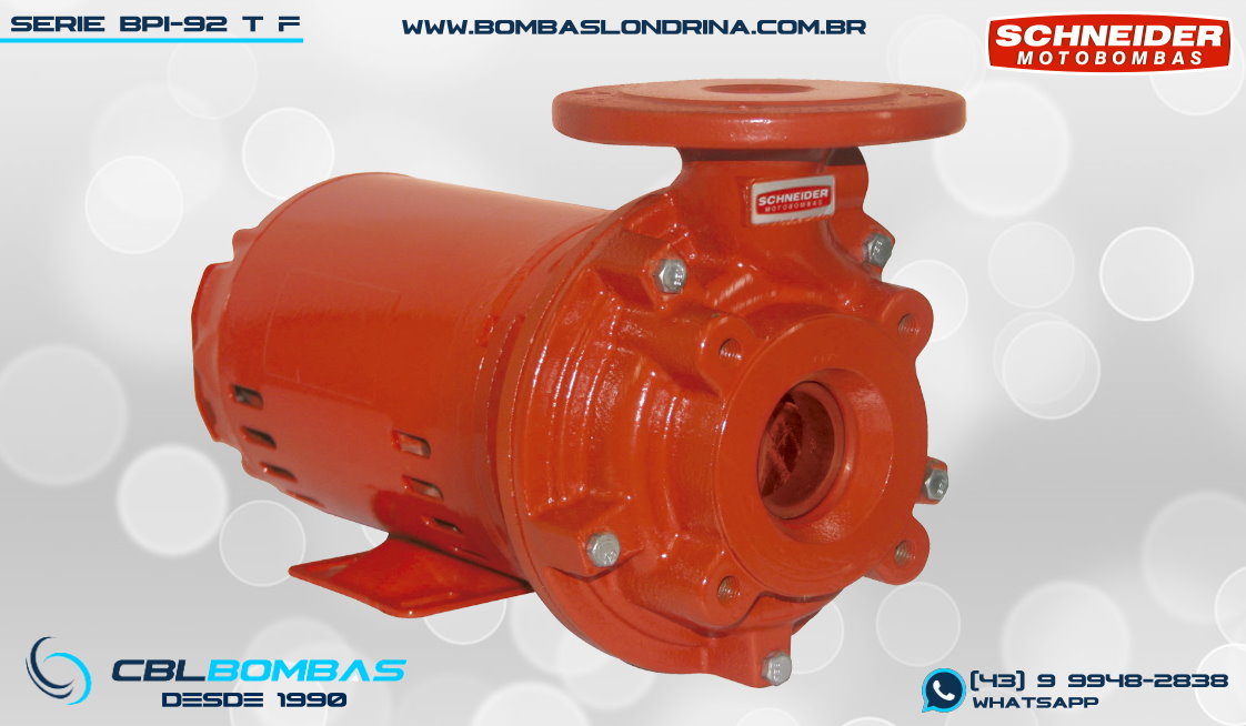 bomba schneider para redes de prevenção de incêndio. disponível nas potências de 1,0cv, 1,5cv, 2,0cv e 3,0cv.