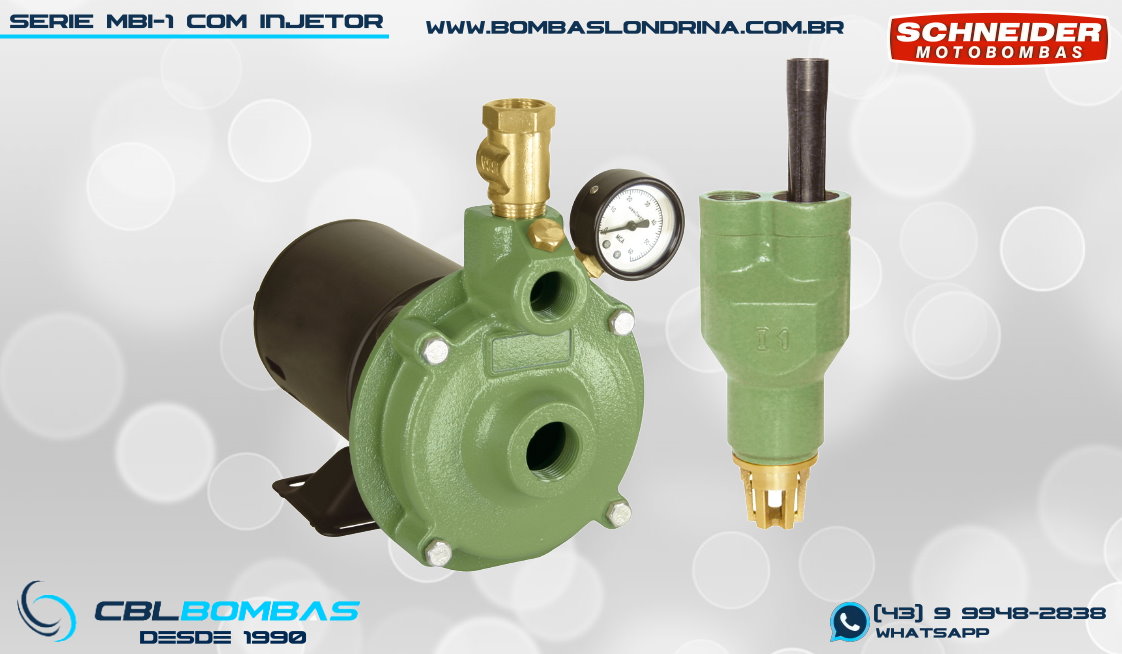 bomba schneider monoestágio para fluídos sem sólidos. disponível nas potências de 3/4cv , 1,0cv e 1,5cv.