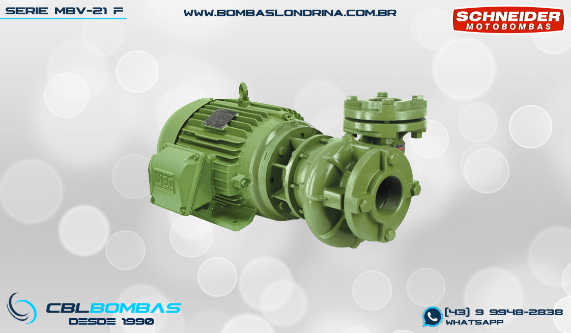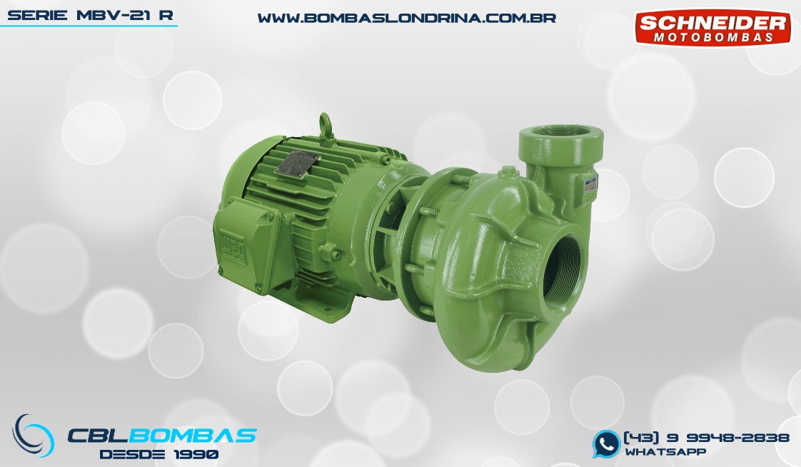 bomba schneider com rotor aberto para fluídos com sólidos em suspensão. disponível nas potências de 5,0cv a 25,0cv.