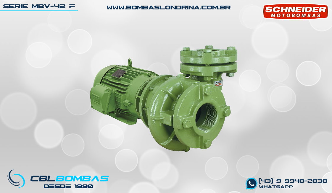 bomba schneider com rotor aberto para fluídos com sólidos em suspensão. disponível nas potências de 2,0cv a 5,0cv.